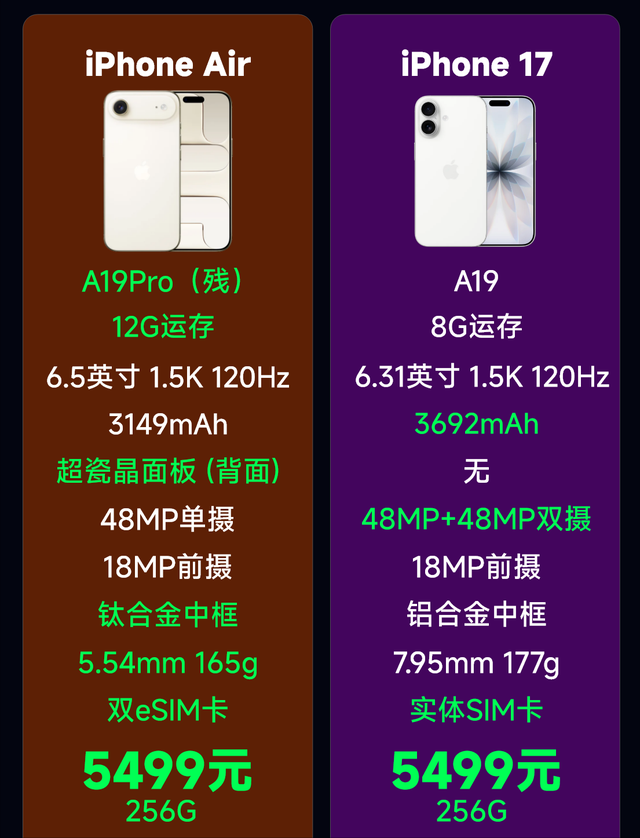 如果说7999元的iPhoneAir,那确实贵,没人买很正常,实在是太不值得了,但5499元的iPhoneAir,只能说是真香,所以很多人抢着买。